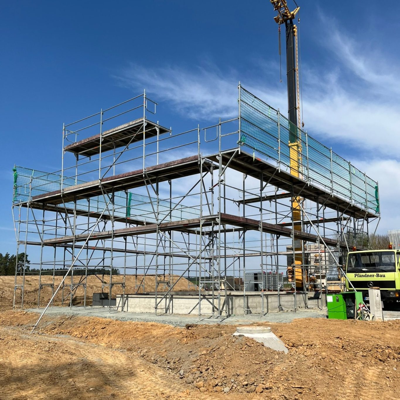 Bei diesem Projekt haben wir ein Gerüst errichtet, das einen sicheren Ablauf aller Bauarbeiten am Neubau gewährleistet.