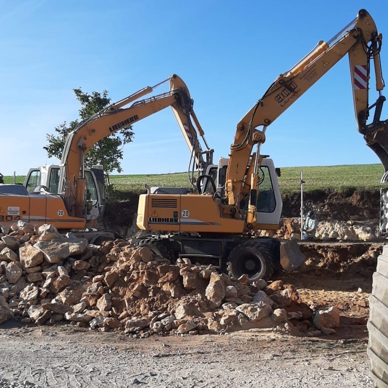 - Aushubarbeiten für Fundamente und Neubauten