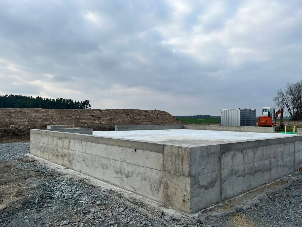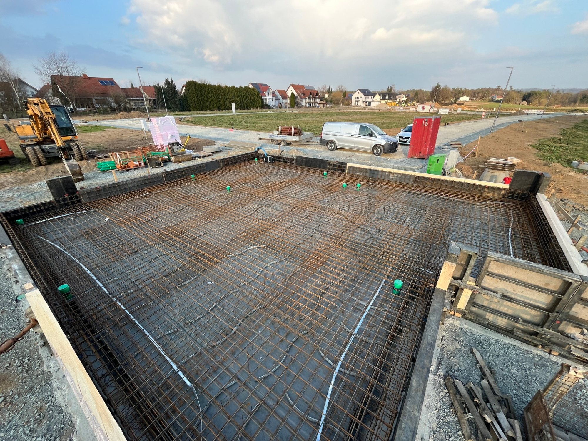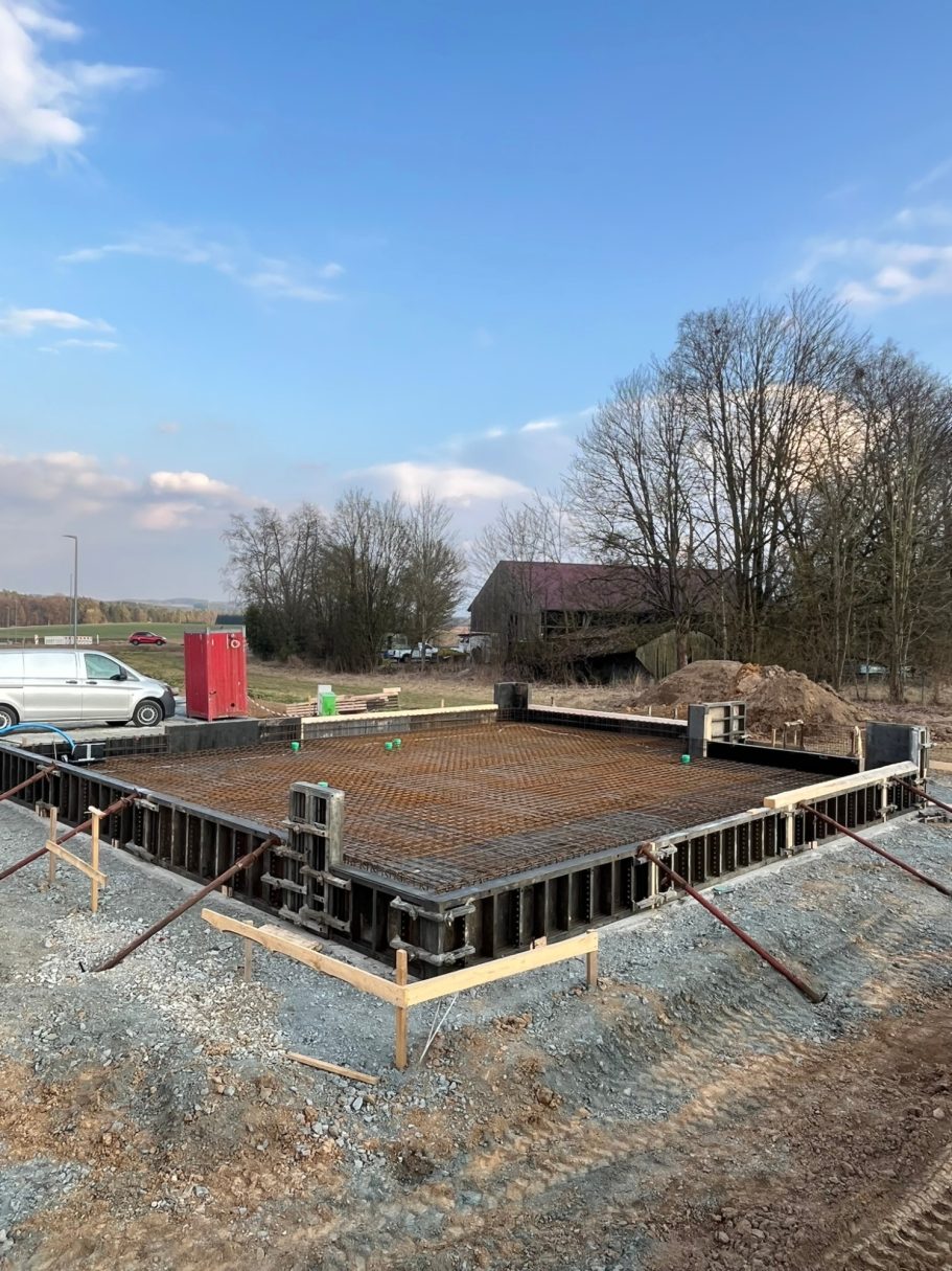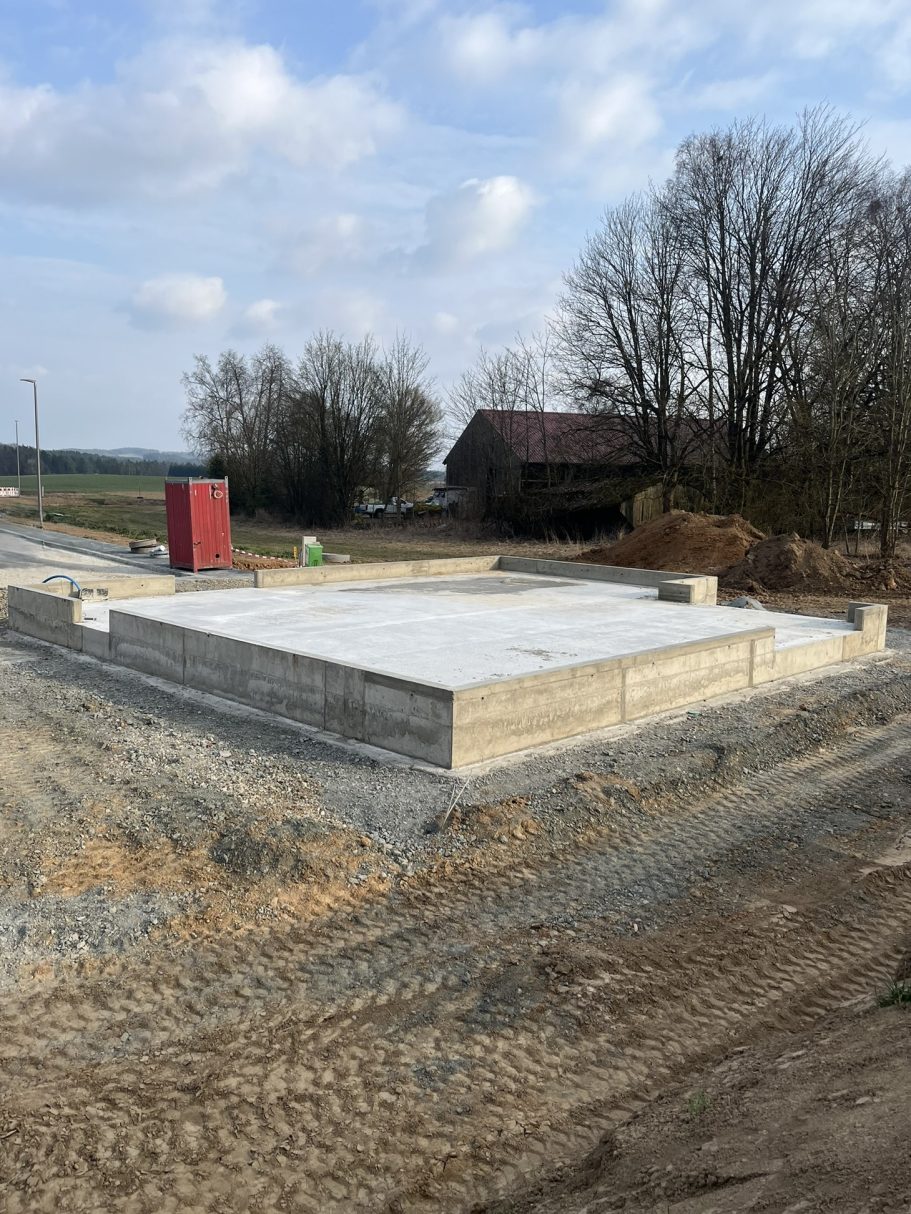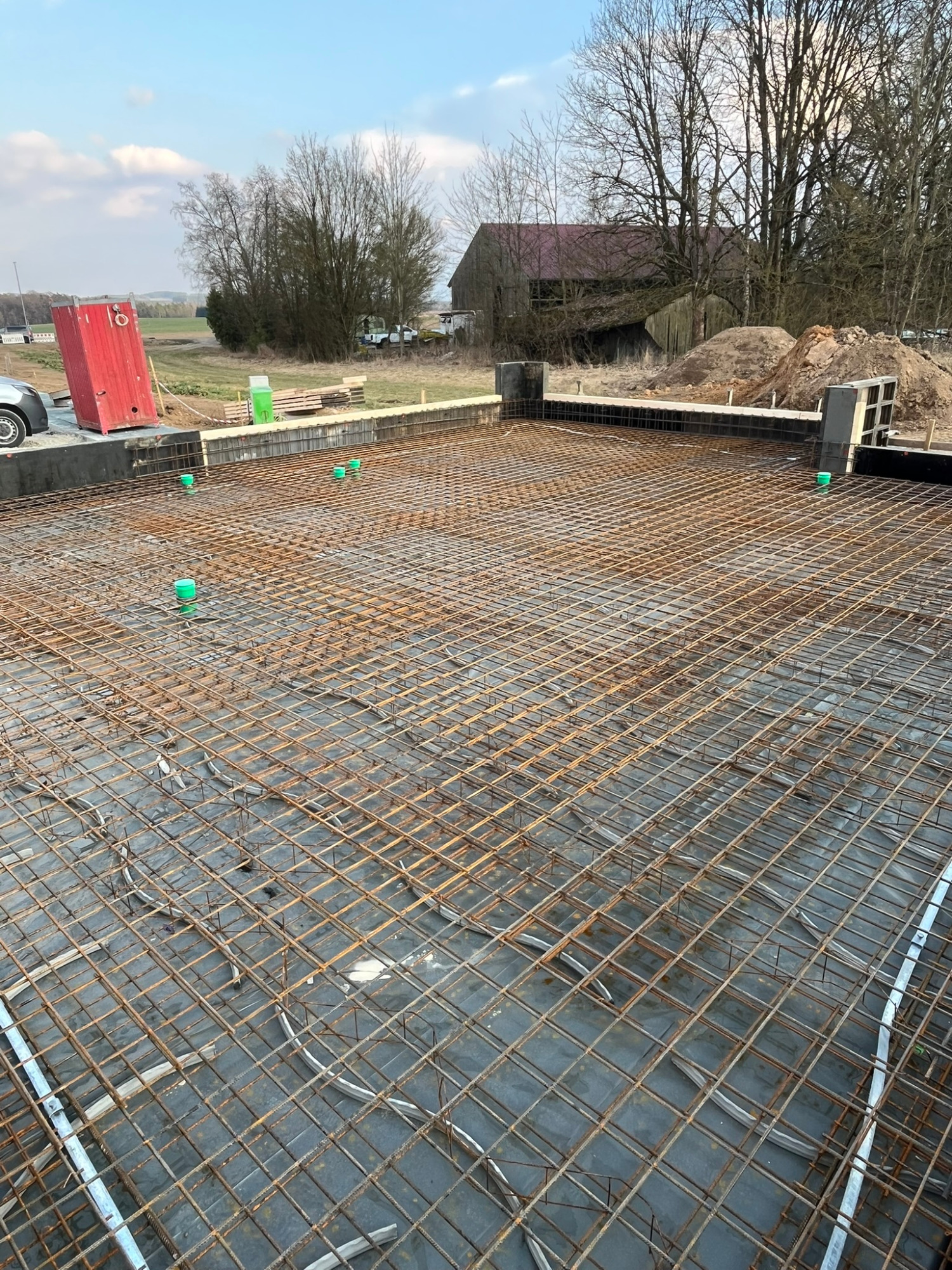 Für dieses Neubauprojekt haben wir den Aushub übernommen, die Leitungen für Abwasser, Wasser und Strom fachgerecht verlegt und anschließend die Bodenplatte gegossen.